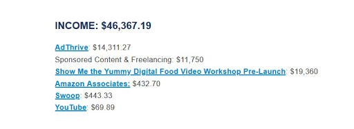 Por ejemplo, aquí hay una captura de pantalla de un informe de ingresos de 2016 de Share the Yummy: