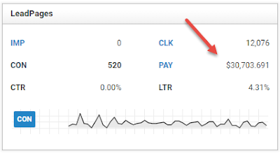 - Las herramientas con una conexión clara para ganar dinero también se venden mejor que las demás. Por ejemplo, constructores de páginas de destino. Como prueba, aquí hay una captura de pantalla de nuestras ganancias de la promoción de LeadPages: