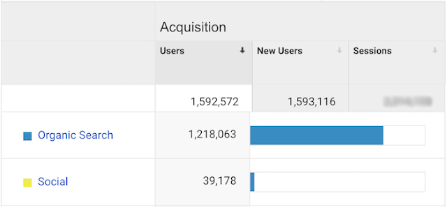 Sin embargo, los buscarás en Google. Tal como se supondría entonces, el nicho de los blogs está muy dominado por la búsqueda. Aquí hay un desglose del tráfico de un Blog hecho por nosotros: